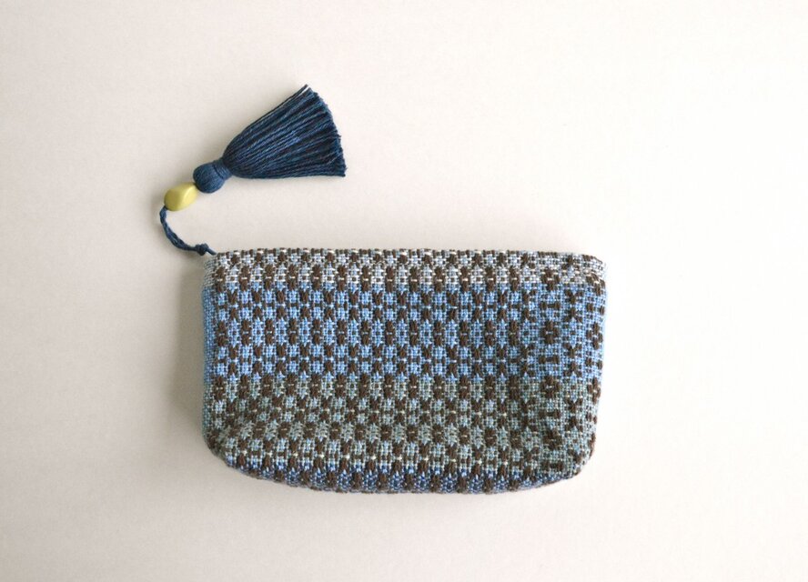 伝統的な柄を元に、オリジナルな要素を加え織ったポーチです。