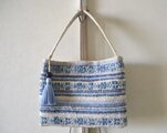 古い着物の生地とピンストライプの麻の生地等を使って
