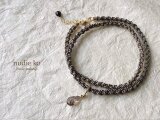 ブレスレットは、太い撚りシルク糸を使いネックレスと同じ草木染で3重のラップブレス