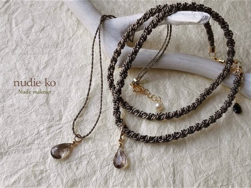 ネックレスには長野県の岡谷市にある、宮坂製糸所で作られている柔らかなシルク糸を