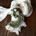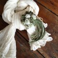 白詰草とクローバーにレースなどを合わせてクリップ付きのコサージュに仕立てました。