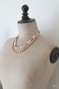 短い連は47cm、一番長い連は52cmほど。大人の女性のデコルテで静かな華やぎを添えるアクセサリー。ふわりとしたセーターややわらかなシャツに。