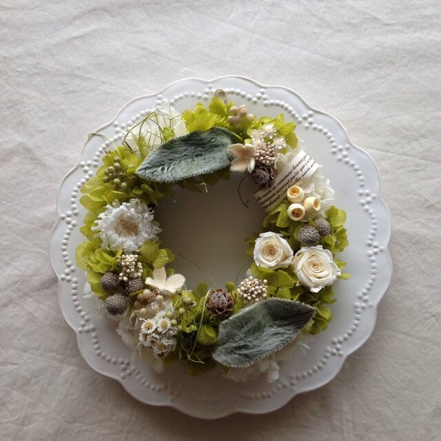 green teaな様な優しいグリーンカラーのリースです。