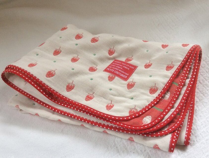 コットン100%のfuwaraさんの6重ガーゼにバイアステープをまわりに使ってでガーゼケットを作りました。