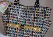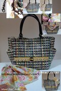 サイドポケットバッグS(輸入生地シャネルツイードミックスカラー黒ゴールド×リバティスカーフ)
