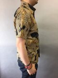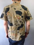 新作手作り半袖和柄シャツ(鹿の子に扇)