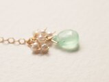 淡いグリーンが魅力的なクリソプレーズにごく小さな淡水パールを留めつけた