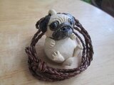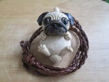 仰向けポーズでまるまるコロッとしたパグのペンダントです。