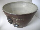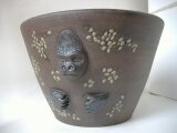 外側を灰釉掛け、内側を透明釉掛けし1240度で焼き上げ、煙で燻して黒くしています。