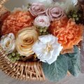 コロンと可愛いバスケットにプリザーブドフラワーを贅沢にたっぷりと入れたバスケットアレンジです。