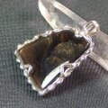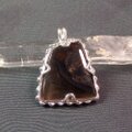 オレゴンで産出するレアストーン「ファイアーオブシディアン」を 石枠に粒飾りをつけたペンダントに仕上げました。