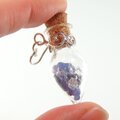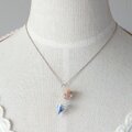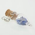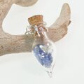 爽やかなブルーのサファイア原石とダブルポイントクォーツをガラスボトルに閉じ込めたペンダントに仕上げました。