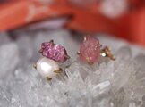 鮮やかなピンク色のトルマリンと、上品な輝きのパール。