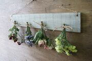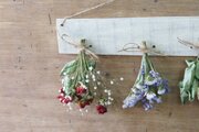 自家製ドライフラワーを古材風に加工した板にセットしました。