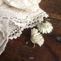 オフホワイトに染色して作ったデージーの中心にコットンパールを合わせイヤリングを作りました。