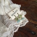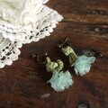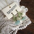 オーガンジーをブルーに染色して作った小さなお花に、レース糸で茎と葉を編みイヤリングを作りました。