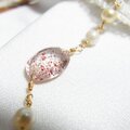 透明の石の中には自然に生まれた内容物達がそれぞれの輝きを放つストロベリークォーツ、そして小さなあこや真珠を添えて上品さを加えました。