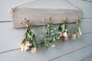 自家製ドライフラワーを古材風に加工した板にセットしました。