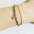 チェーンにブルーのリボンを編み込み、華奢なチェーンを2連にしたブレスレットです。