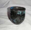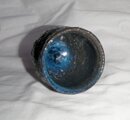 粗目の黒い土で作って、青い釉薬が濃淡で掛かってます