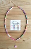 スマイルマークとカラフルビーズのネックレス(ピンク)