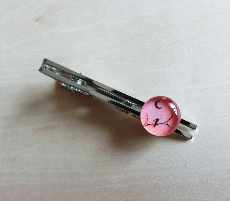 梢と鳥を描いた絵を、樹脂で閉じ込めたネクタイピンです。
