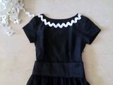 受注製作★濃紺リネン★マドモアゼル・ワンピその5★山道テープ付き
