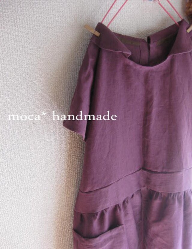 【受注製作】リネン襟付きベルト切り替えワンピース★スモークパープル