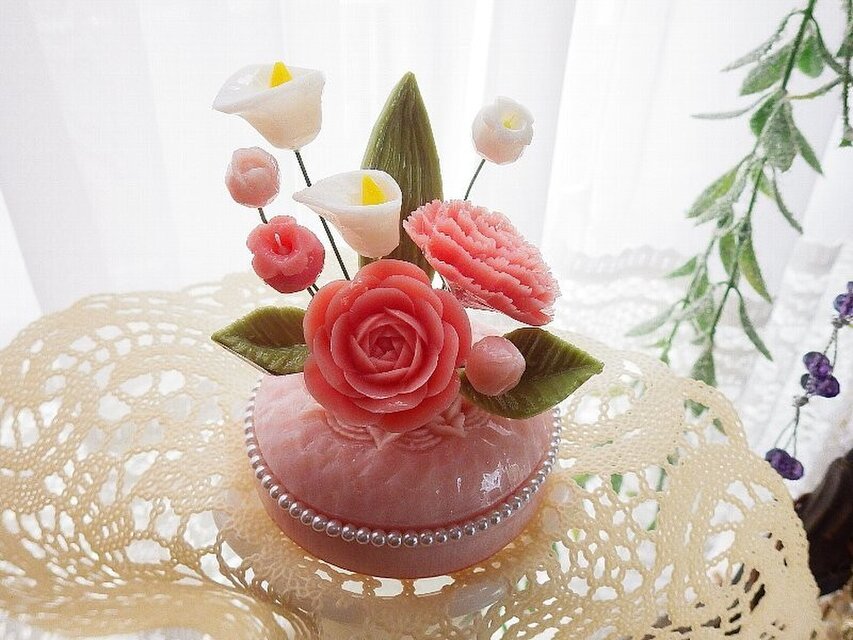 デザインに惹かれ購入。発送前には,丁寧にラインストーンの色や発着日時のリクエストも確認いただき,とても迅速に発送対応いただきました。実際に作品を手にとり,その繊細な技巧に感動♪香りも楽しめて,カードスタンドとしての実用性も兼ね備えていて,おしゃれなラッピング&温かいメッセージ付きのカードも添えていただき,大満足です!ぜひまた購入させていただきたいと思います。