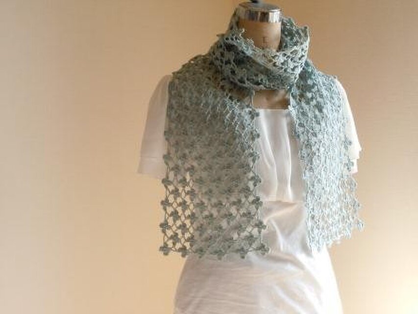 上質なリネンと綿を使った糸で編んだコンパクトなストールです。