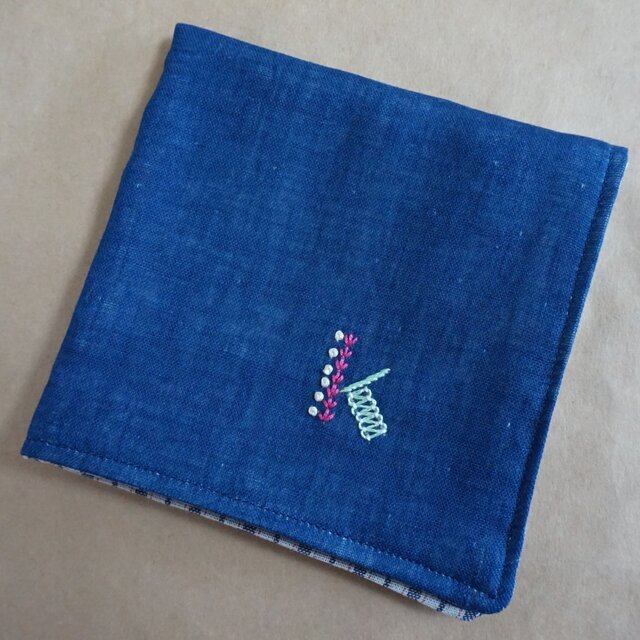 ダブルガーゼの生地に、手刺繍でワンポイントを施したハンカチです。