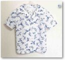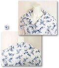 レトロスタイルにピッタリな、生地は白地にブルーでアザミ風の小花が描かれた、