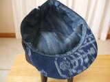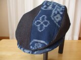 亀甲が織り出された麻と綿縞のアンティーク着物からハンチング