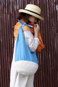 結び方次第でショルダータイプにしたり手にかけるタイプにしたりと色々楽しんでいただけるバッグです。