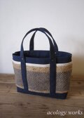 紺色の帆布に、ブラックの太いボーダー麻を合わせました。