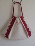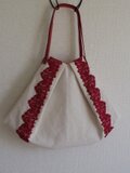 きなりのコットンリネンと、レース、ウッドビーズ、持ち手の革の赤のマッチングがとてもしっくりと綺麗で気に入ってしまったので、もう一度…。