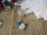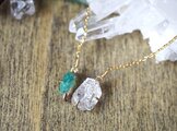 原石のエメラルドとダイヤモンドクォーツのネックレス