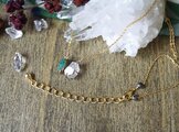 素材:エメラルド・ダイヤモンドクォーツ・パイライト・真鍮(石枠)・ゴールドメッキ製品(チェーン・金具)