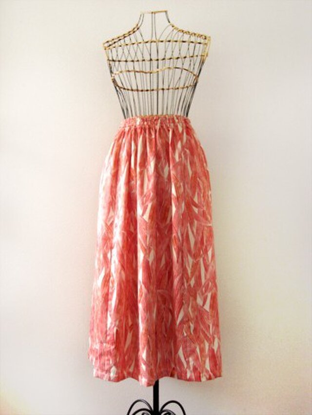 古い綸子の着物でロング丈のギャザースカートを作りました。