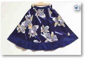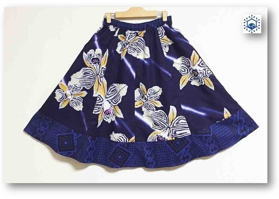 スカート本体は濃紺に浮かび上がるように蘭が染められた浴衣地、