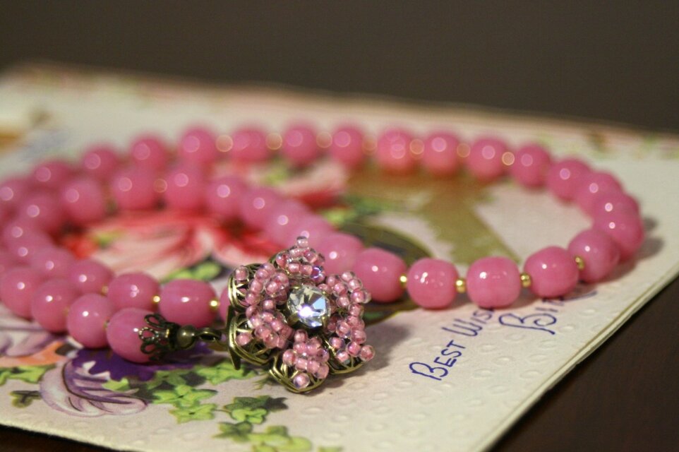 チェコのグラスビーズとスワロフスキーをあしらいました。