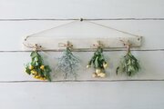 自家製ドライフラワーを古材風に加工した板にセットしました。