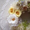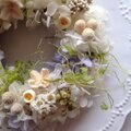 白と淡いパープルのプリザーブドフラワーのアジサイや花々でそよ風を感じられる様な爽やかなリースをつくりました。