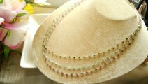 2ミリの小さな小さなキューブのカットガラスを、ワイヤーで一粒ずつつなぎ、ネックレスを作りました。(*´∀`)