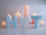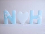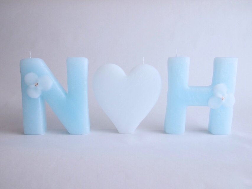 イニシャルキャンドルよりさらに薄色のライトブルーでお作りしており、イニシャルを際立たせてくれます。