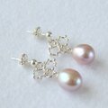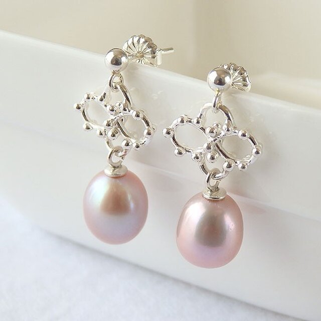 艶やかな品のある輝きの淡水パールをオリジナルのシルバーパーツに添えて可愛らしいピアスに仕上げました。