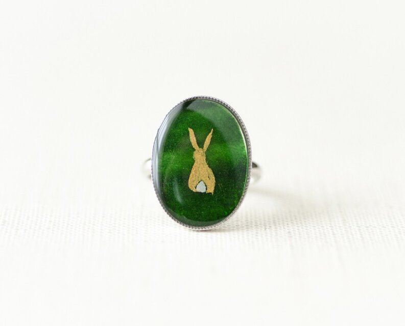 手描きのオリジナルイラストをレジンで閉じ込めたゆびわです。