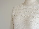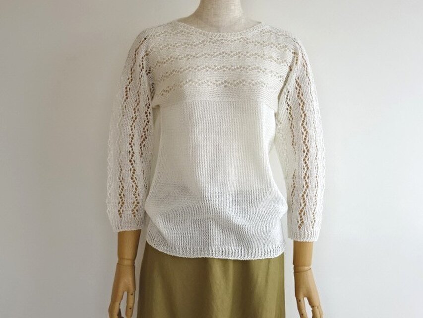 デザインは、袖からヨークそして袖と続けて一気にレース編みにしてみました。