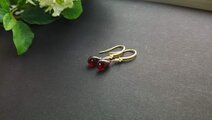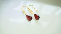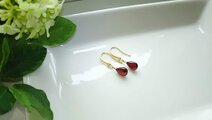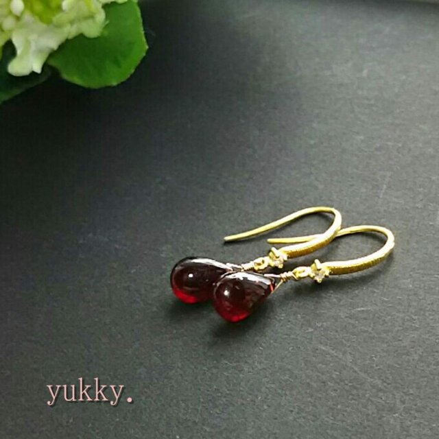 プリっとした深紅なガーネットを、K24マットゴールドコーディングされた、キュービックジルコニア付きのフックでピアスを作りました。(^-^)