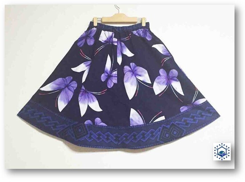 スカート本体は濃紺に白に紫の絞り風染めで蝶々が描かれた浴衣
